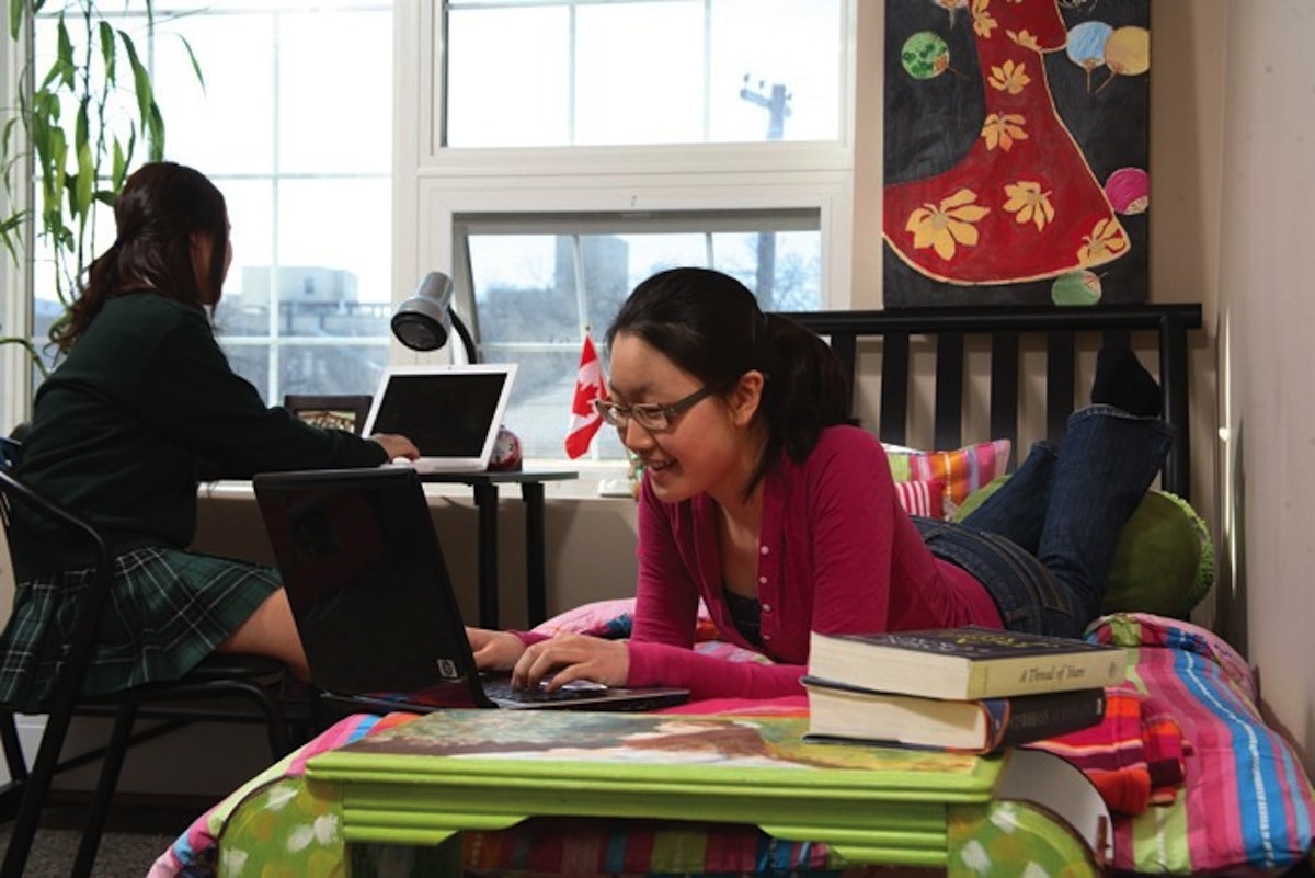 La escuela se encuentra en un vecindario histórico y ocupa un terreno de 12 hectáreas a las orillas del Río Assiniboine en Winnipeg, Canadá.